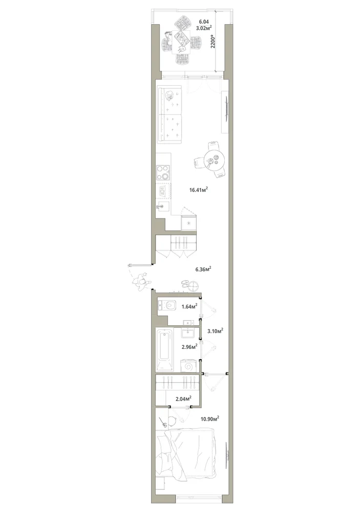 1-комнатная 41.95 м