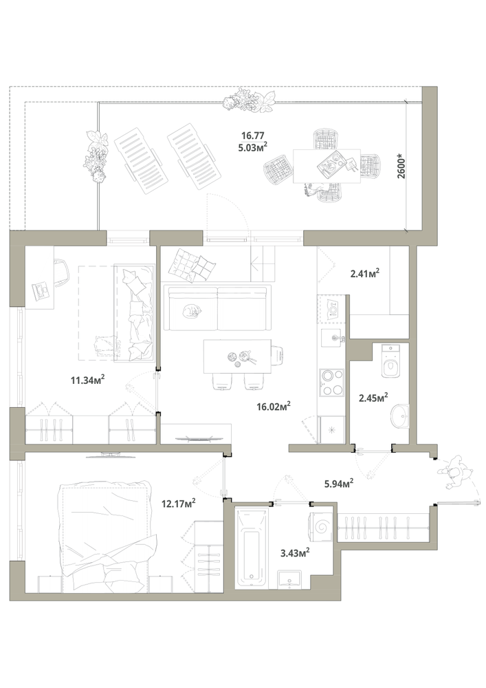 2-комнатная 56.21 м
