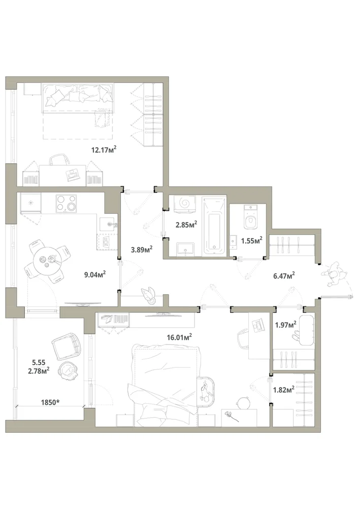 2-комнатная 60.78 м