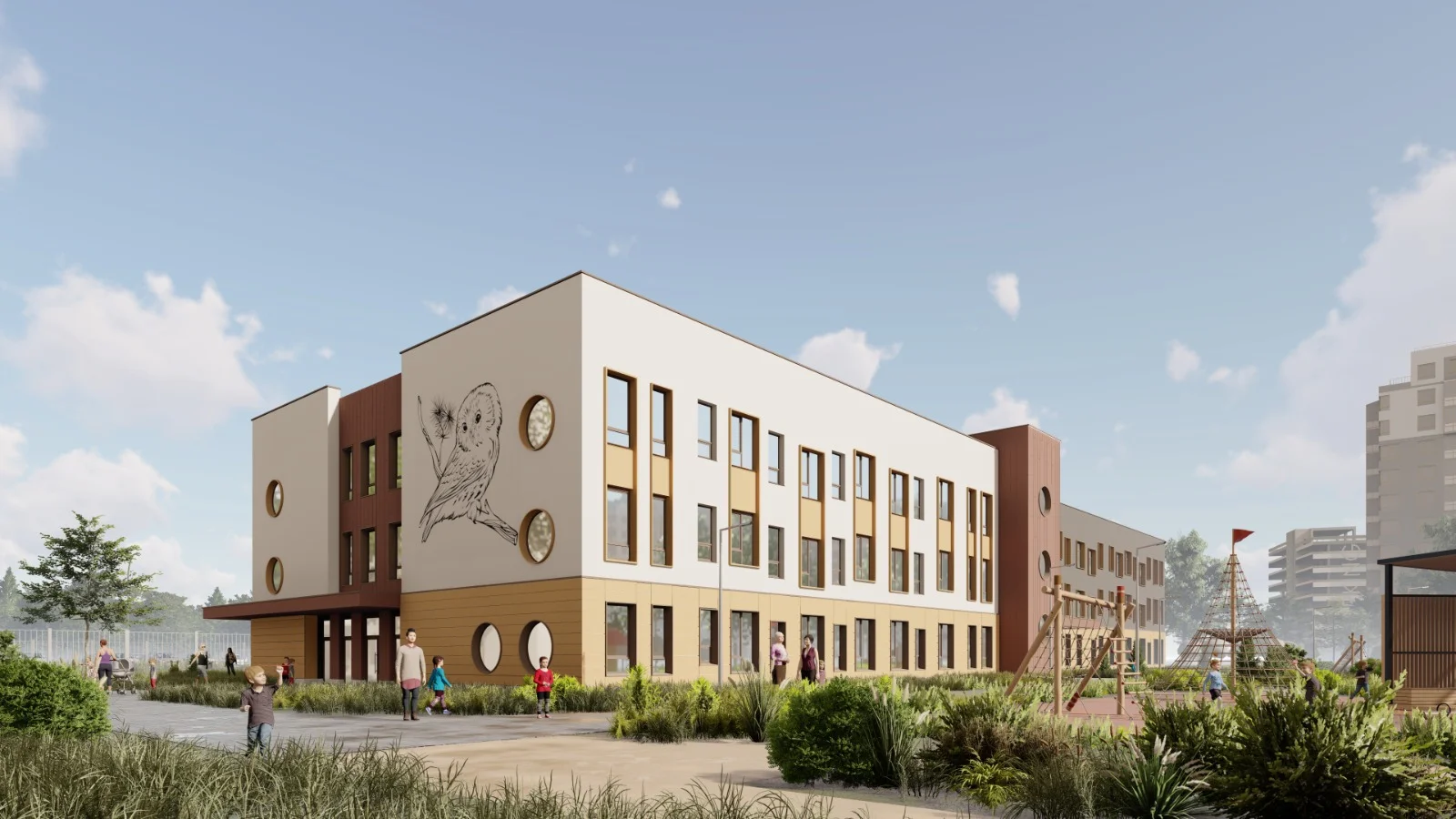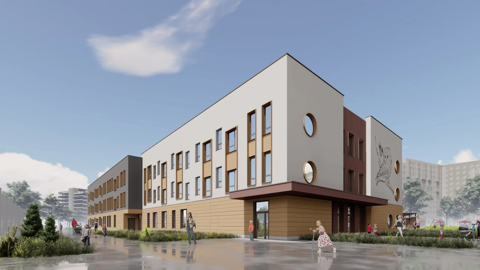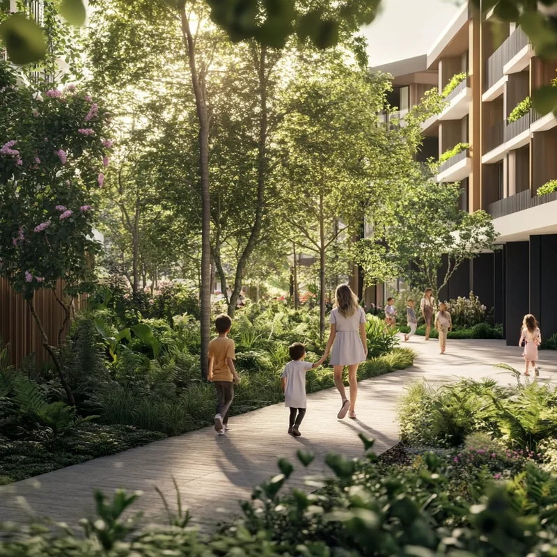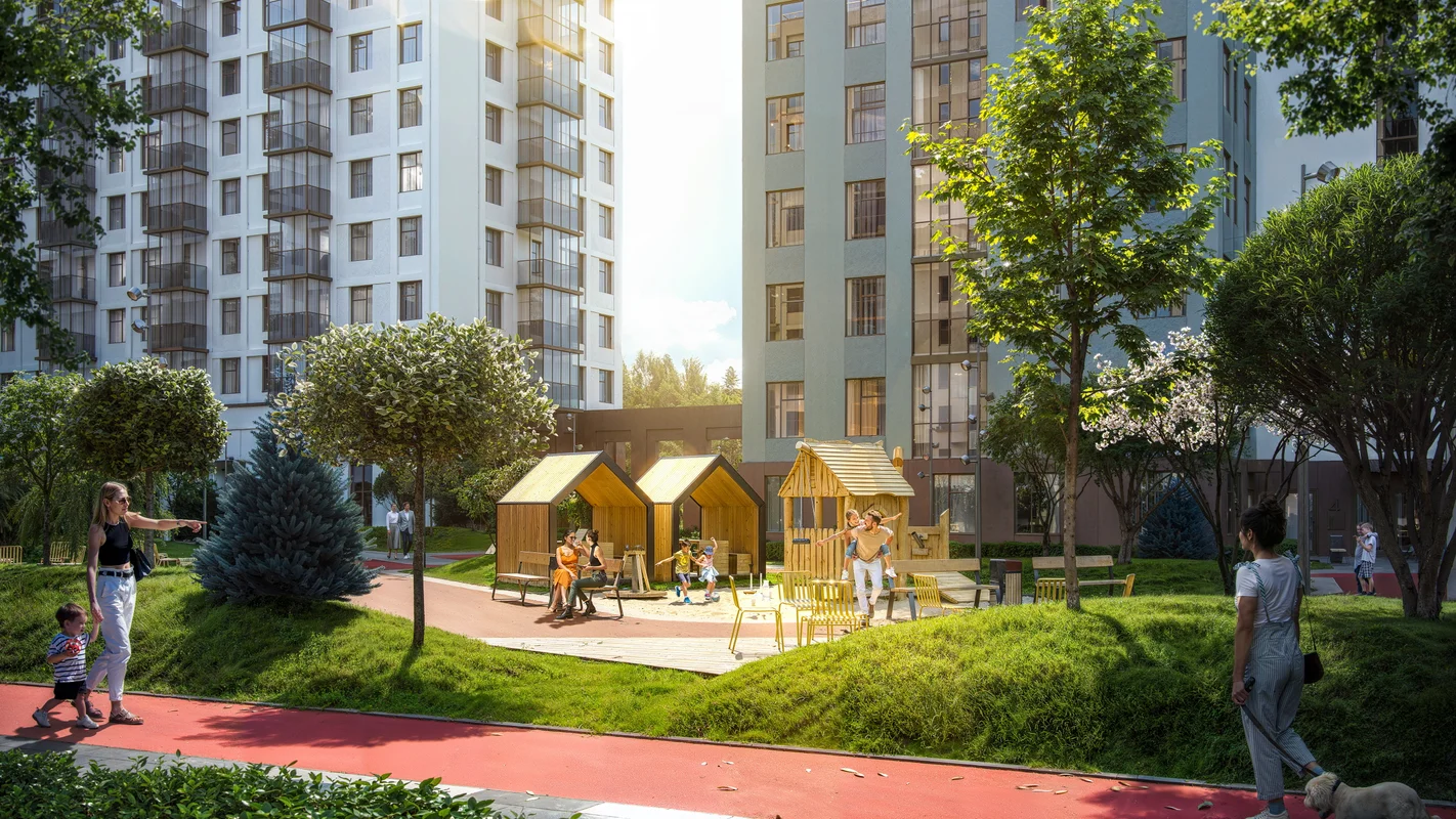 Все шумные активности вынесены за пределы дворов — от Гореловского леса до пруда кварталы Тишина разделяет бульвар в 1 км с рельефным ландшафтным дизайном, центральной площадью и спортивным полем.