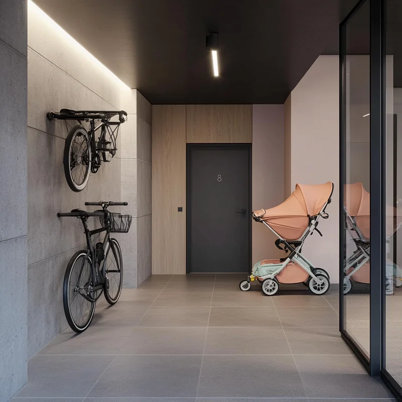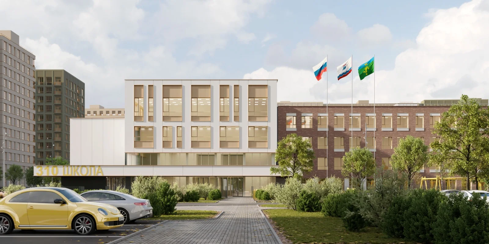 Если захочется пройтись, побегать, покататься на велосипеде, роликах или самокате — здесь же проходит сеть пешеходных и велодорожек, интегрированная со всем пространством комплекса. А для тех, кто живет вместе с домашними любимцами, предусмотрена площадка для выгула.